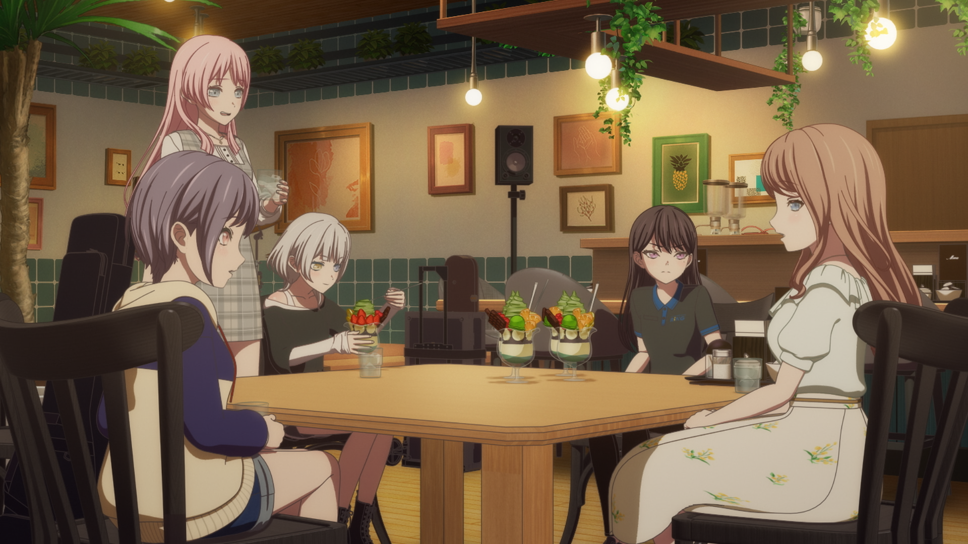 無事にライブが終了し、RiNGで打ち上げを行うMyGO!!!!!メンバーたち。